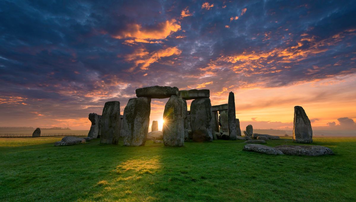 Rituel au lever du soleil dans le cercle de pierres de Stonehenge en PRIVÉ.